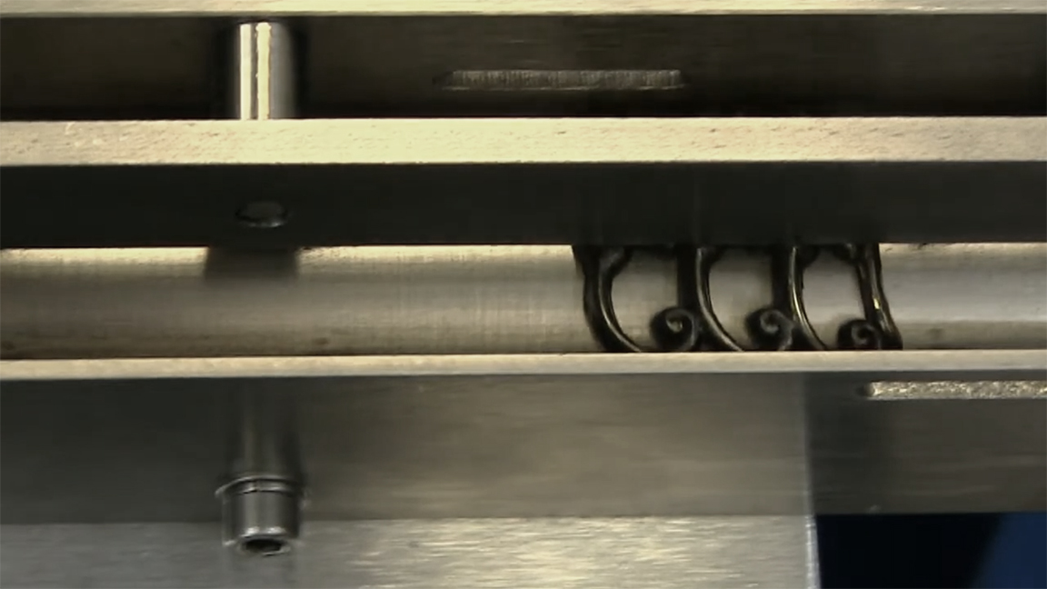 For sure, there are machine vision options that could see items and deliver information to a gripper that would correct orientation, but that takes time, processing power and it can be costly and tricky technology to employ depending on the situation. However in this case our process required a steady stream of metal badges, to be presented at a rate quicker than one per second.