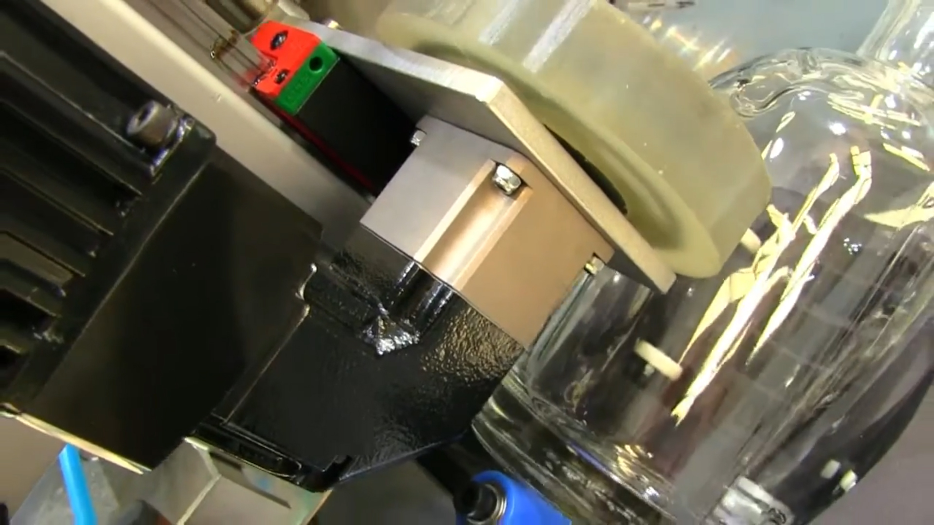 However after creating a custom nest for the product to sit in it was possible to feel for the correct position using the torque sensitivity of a Moog SmartMotor. As this was a stage of a multi part process it was important that the datum point of the bottle was found very quickly. To the untrained eye you may think that the motion is the same for every bottle, but if you look closely you'll notice that the bottles are all turned by a different amount and there is no indecision at the point where the correct placement is achieved.
