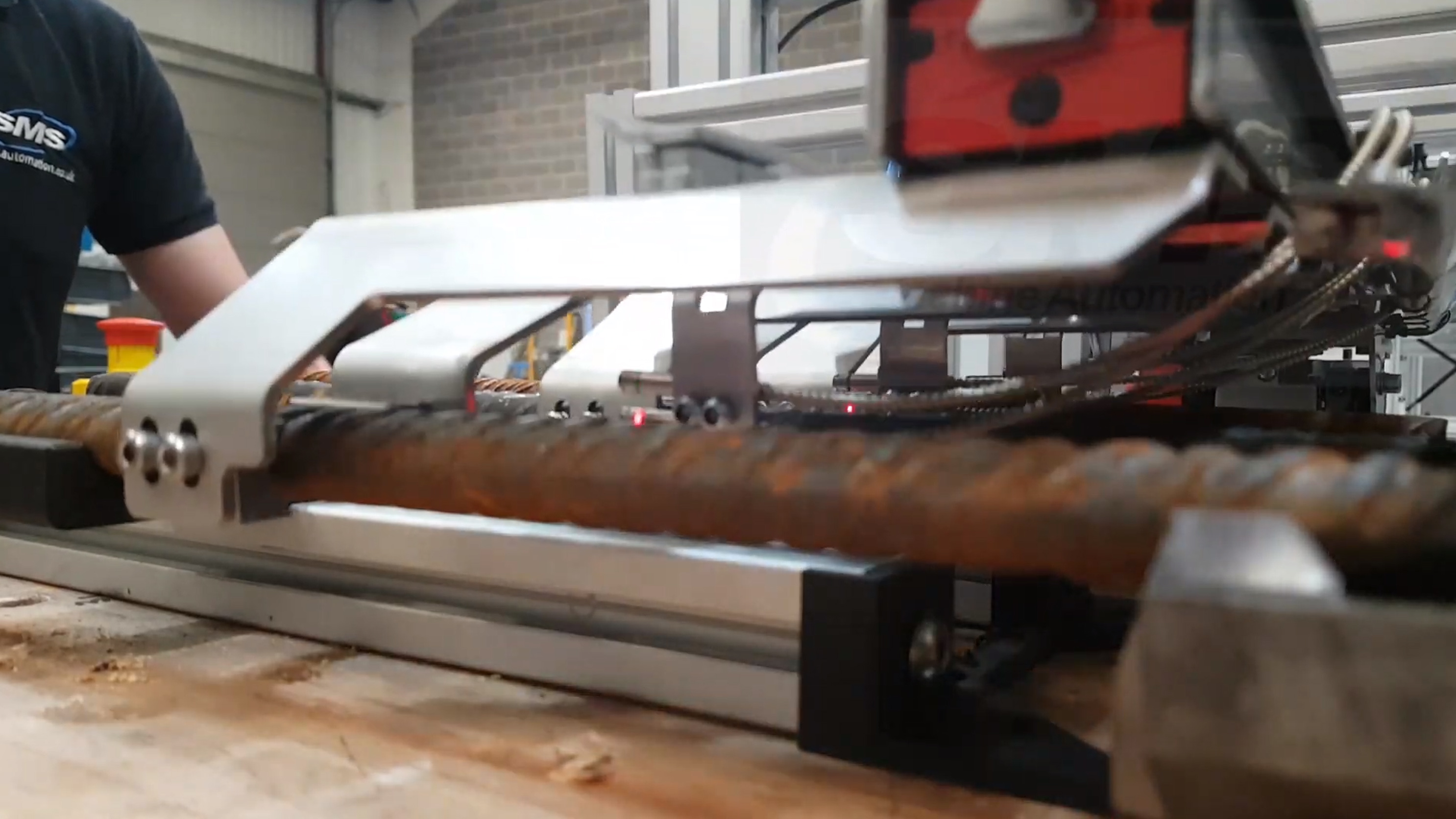 The customer had already attempted to automate the process with an articulated robotic solution and magnetic grippers, however the rebar as a subject had proved difficult to move and desired results could only be achieved at low speeds. Through an initial period of testing and prototyping that required a parallel system was created where a number of bars could be moved through the forge press system at the same time and in a way which reduced any angular momentum in their 'flight-path'.