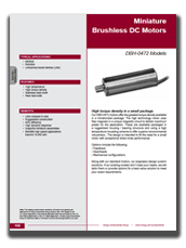 Our DBH-0472 miniature brushless DC motors offer the greatest torque density available in a miniaturized package. The high technology motor uses Neo magnets in a unique magnetic circuit to deliver maximum power for the application. These are available packaged in a ruggedized housing/bearing structure and using a high temperature insulating scheme to offer superior environmental robustness. The design is intended to fill the need for a small motor with exceptional direct drive performance.