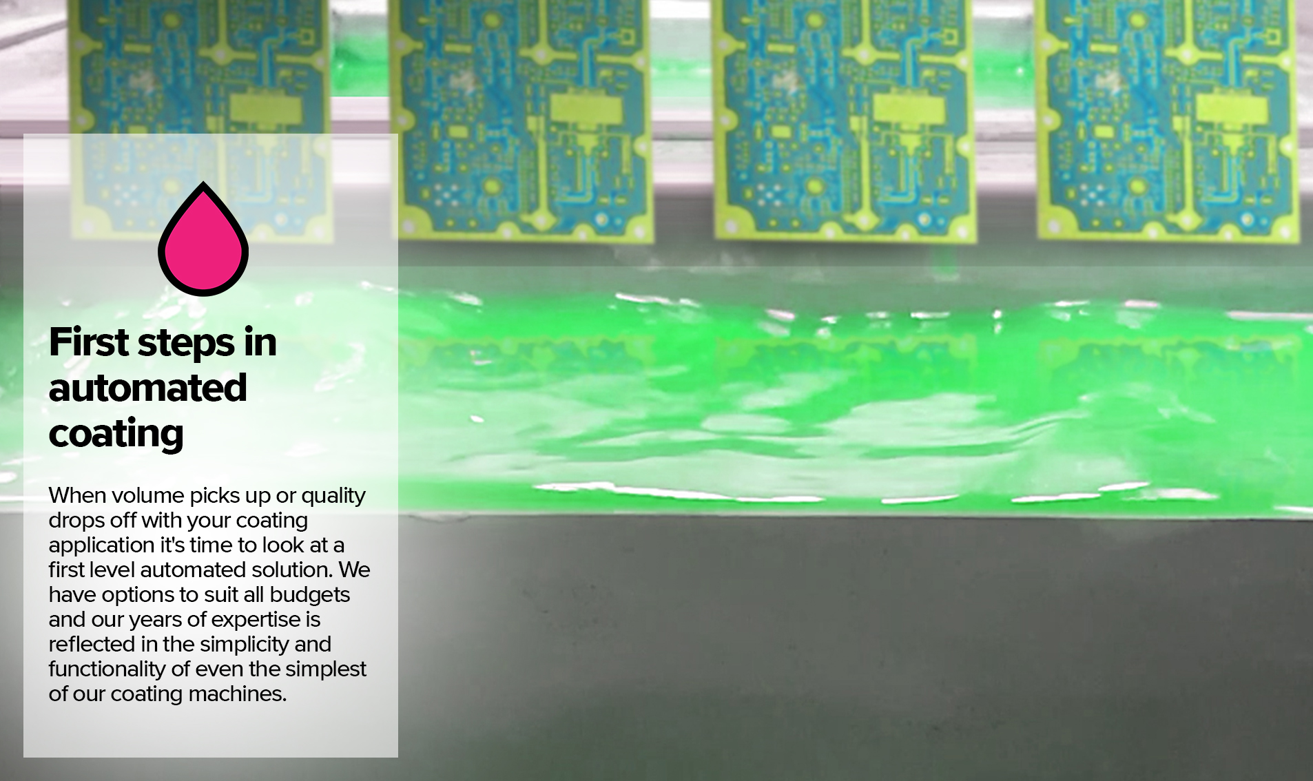 Handling tricky fluids on automation is something we've done a lot of. Automated solutions offer reliable, repeatable ways to handle and apply liquid substances in a quick and efficient way.