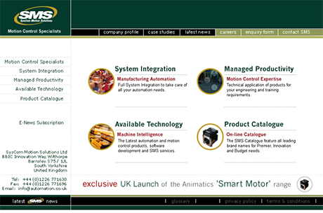 SMS became a distributor of the Animatics Integrated SmartMotor in 2003 and in 2006 SMS was bought by Animatics based in Silicon Valley. A new company Eurmotion was created to sell and distribute the SmartMotor products to the UK and Scandinavia and SMS continued to develop and integrate machine solutions. SMS becomes part of a worldwide network with partnerships with other similar companies across North America and Europe – giving it access to state of the art products and ideas. Many of these relationships continue to this day.